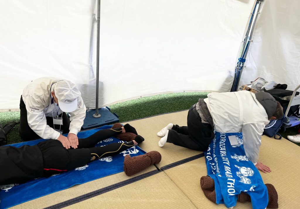 大会終了後は、救護ボランティアスタッフがランナーのケアを担当しました。